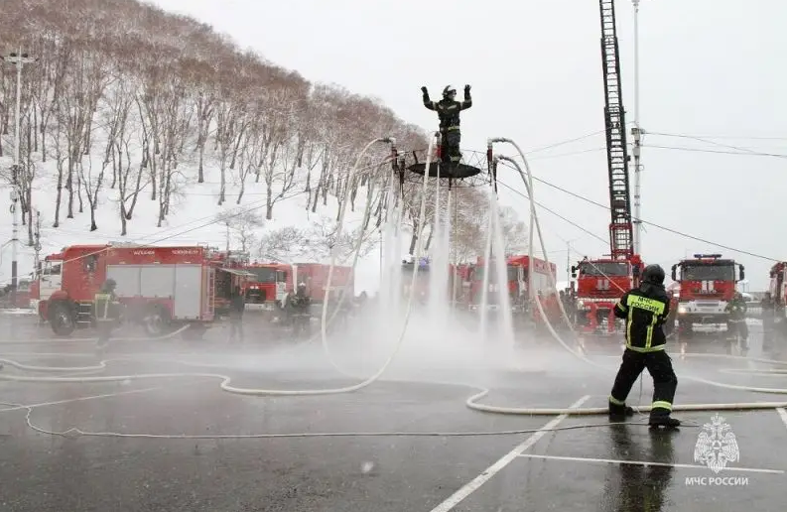 Неожиданностью для зрителей стал подготовленный сотрудниками МЧС сюрприз – пожарный бэтмобиль. Напор воды в пожарных рукавах настолько сильный, что способен поднять в воздух человека. Бэтмобиль и смельчак, который не побоялся подняться в воздух за счёт силы воды, были встречены зрителями бурными аплодисментами. Завершился праздник традиционным и очень полюбившимся камчатцам номером – поющими фонтанами в исполнении пожарных. Напомним, в апреле 1649 года вышел царский «Наказ о Градском благочинии», устанавливающий строгий порядок при тушении пожаров в Москве. С этого момента и пошёл отсчёт со дня образования пожарной охраны. Традиционно он празднуется в России 30 апреля.
