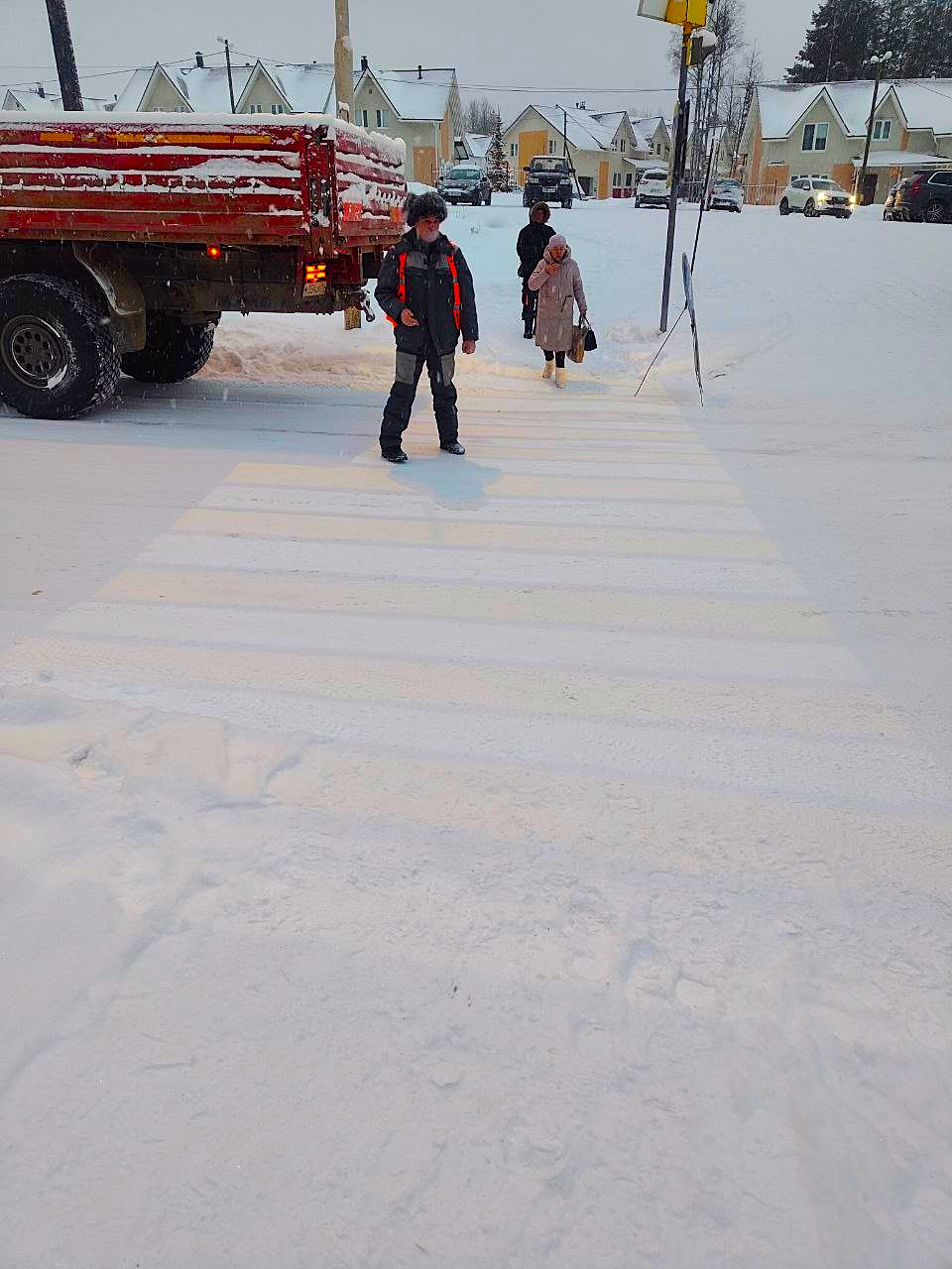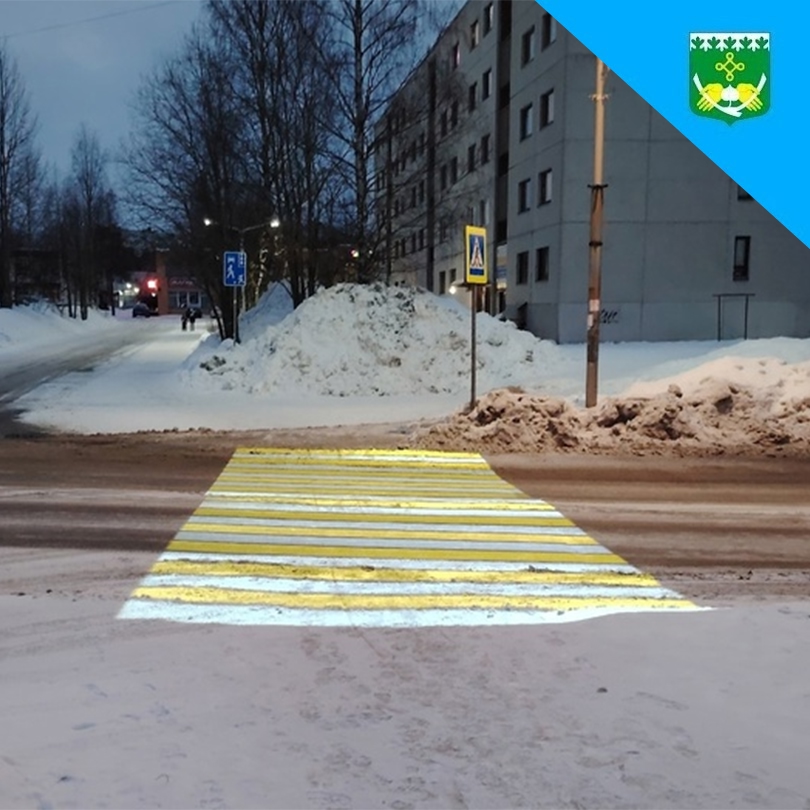 В Костомукше продолжают появляться «зебры из света» — пешеходные переходы со проекционной разметкой.