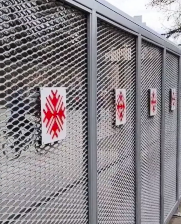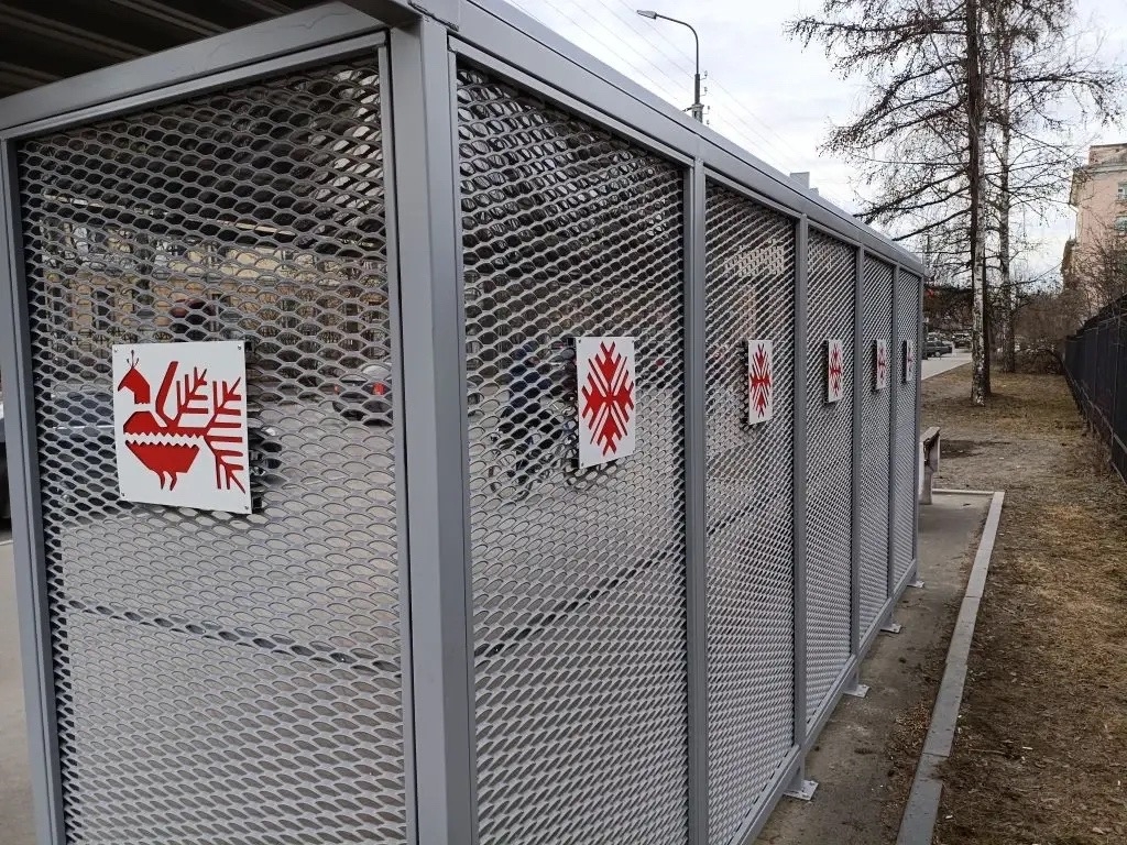 Новые 12 остановок решили украсить — на первом павильоне появились семь табличек с рисунком в карельском стиле. «Смотрят» они почему-то не на пассажиров, а за остановку — на школьный забор. Пассажир, ожидая транспорт внутри павильона, красоты не увидит.