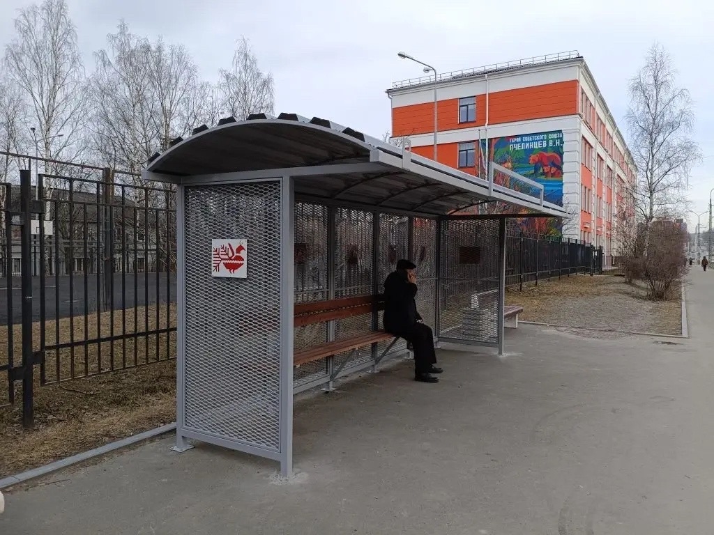 Остановка у школы № 9 изготовлена заключенными Карелии. Горожане критикуют невзрачные и продуваемые павильоны.