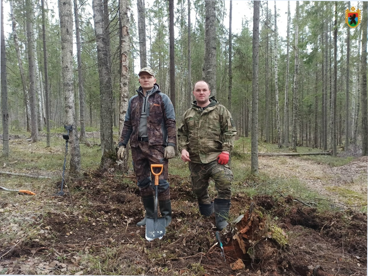 В Пряжинском районе состоялся поисковый полевой выход, проведённый бойцами поискового отряда «Гарнизон» (фонда «Эстафета поколений») Иваном Ярмончиком и Александром Гагариным.