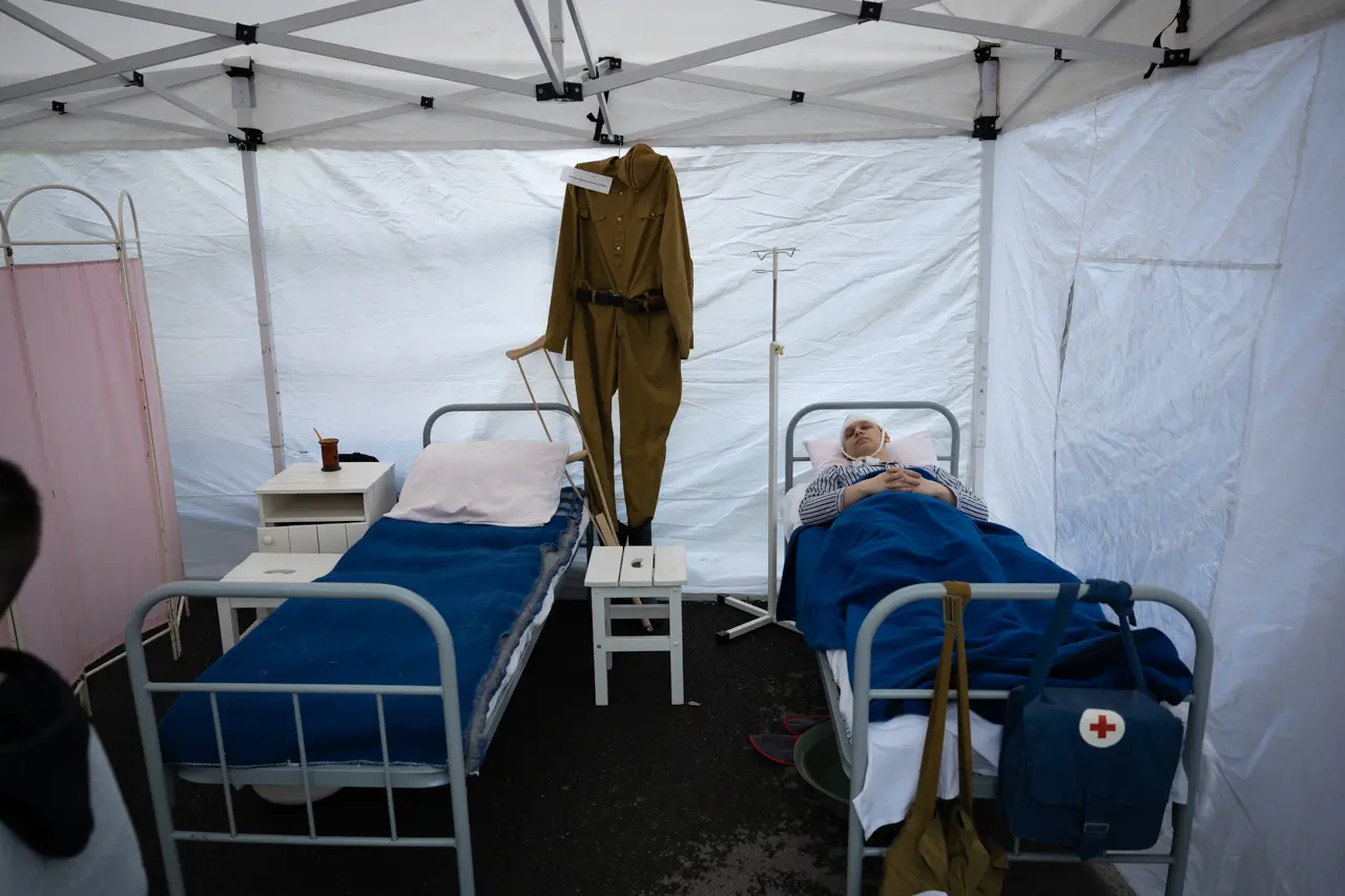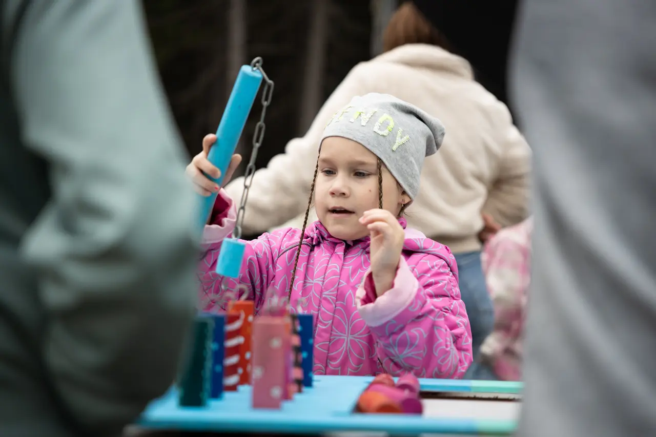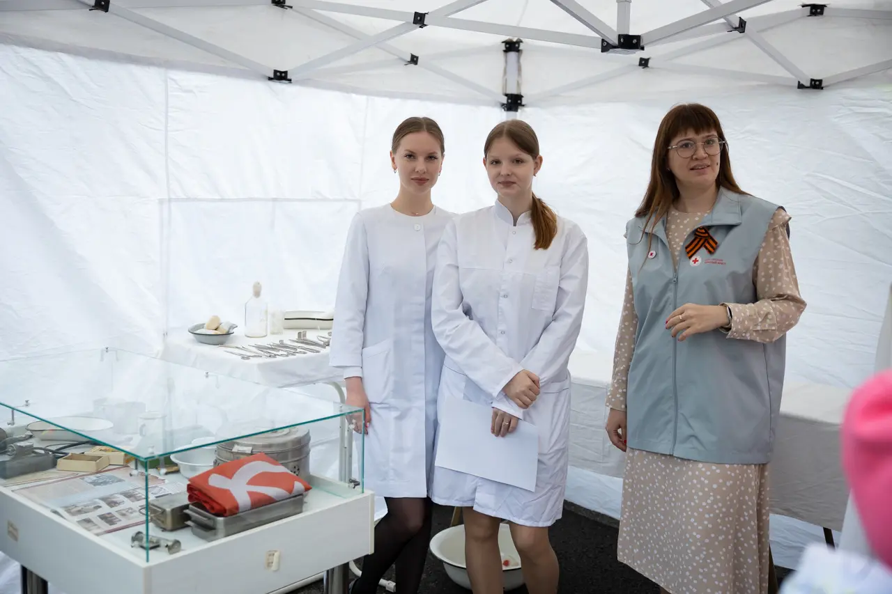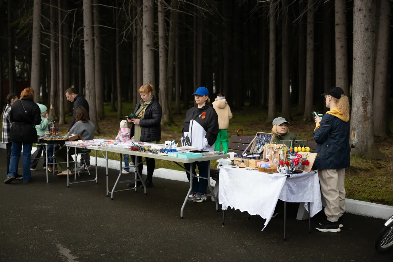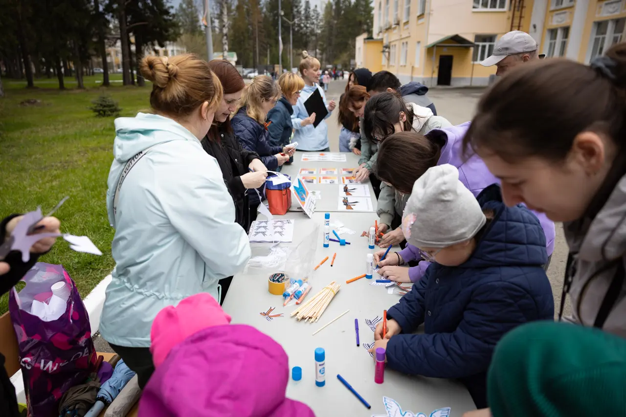 При входе в парк жителей города встречали сотрудницы библиотеки им. Гайдара. Они предлагали ответить на вопросы викторины о войне, собрать мозаику в виде автомата и смастерить бумажного голубя мира.