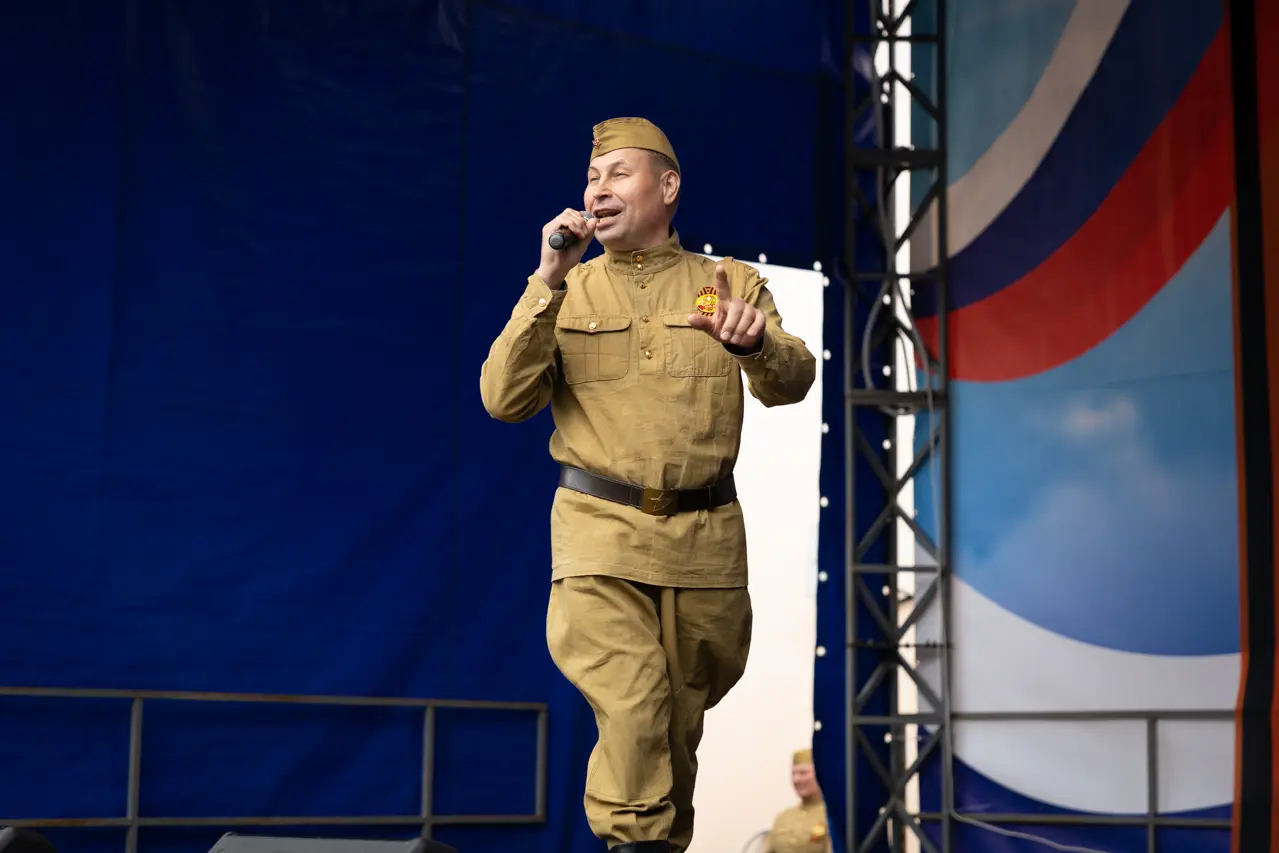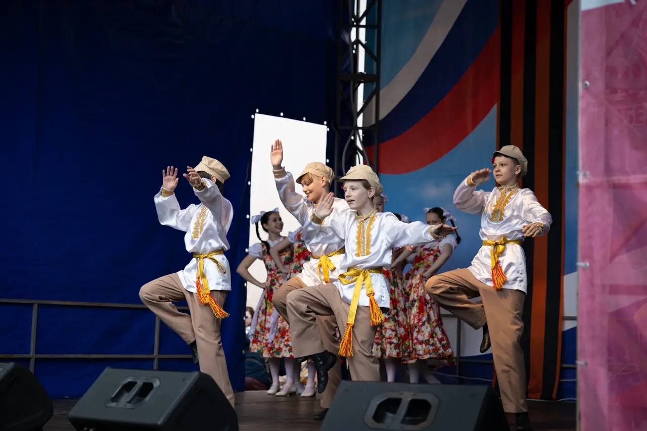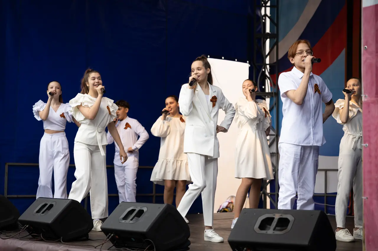Девочки из модельной школы MAXI MODELS исполнили танец-показ подростковой серии одежды «Цветы России» известного в Ревде дизайнера Ирины Козыриной.Завершился концерт, конечно же, песней “День Победы”, ставшей негласным гимном целой страны на 9 Мая (хотя выпущена она была только в год 30-летия победы, в 1975 году). Ее собравшиеся пели хором.