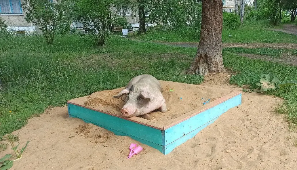 Екатерина, наша читательница, пишет под фото свиньи в песочнице: