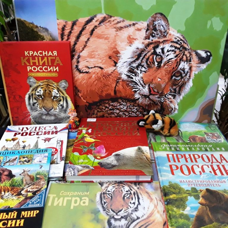 Книги, представленные на выставке, знакомят читателей с интересными фактами из жизни величественного полосатого хищника, самого крупного из семейства кошачьих, который внесён в Красную книгу Международного союза охраны животных, Красную книгу России и другие охранные документы различных стран. С 1947 года действует полный запрет охоты на тигров. Россия входит в число стран, где численность полосатых хищников увеличивается. На территории Российской Федерации обитает 95% популяции самого крупного в мире тигра – амурского. Помимо создания новых уникальных заповедников и природоохранных зон на территории нашего государства, ведется работа и на законодательном уровне. В России есть еще один праздник, посвященный этим полосатым хищникам – ежегодно в конце сентября День тигра отмечается на Дальнем Востоке. Вниманию читателей представлена литература, посвященная тиграм в живой природе, иллюстрированный энциклопедический и справочный материал.