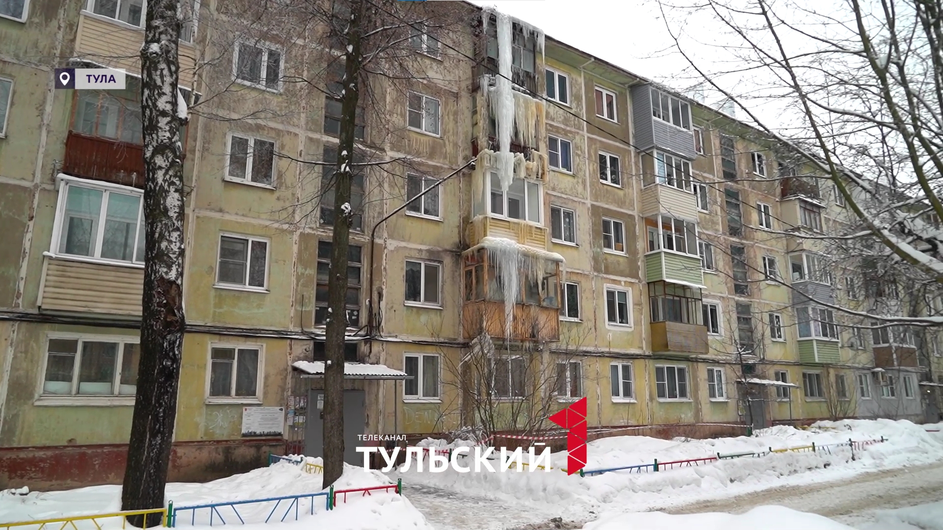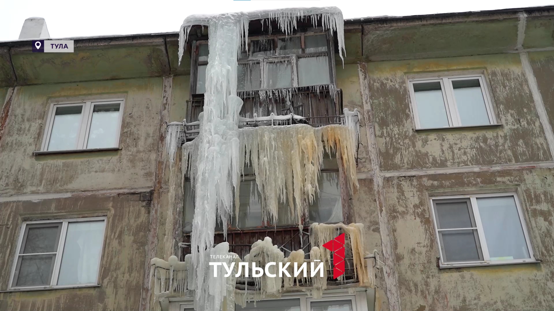 На ул. Металлургов в Туле 10-метровая сосулька сковала несколько этажей