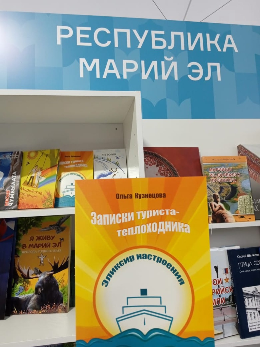 В «Марийском книжном издательстве» в мае вышла в свет книга Ольги Кузнецовой «Записки туриста-теплоходника. Эликсир настроения». Она представлена на Книжном фестивале «Красная площадь» 2-6 июня 2023 года в павильоне №16.